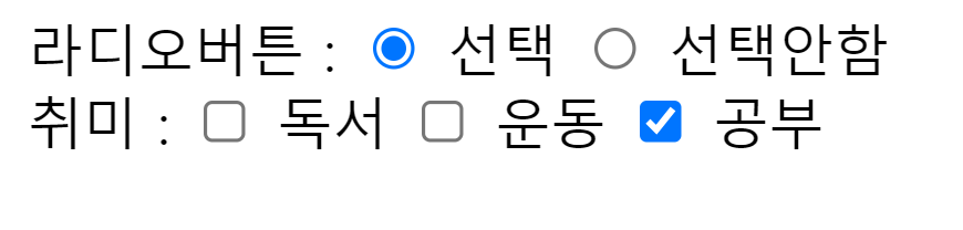 라디오버튼 : <input type="radio" checked> 선택
